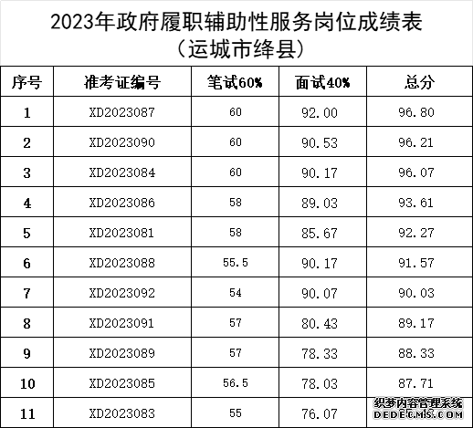 一、运城市迅达人力资源服务有限公司2023年政府履职管理服务辅助性岗位考试已如期进行,现成绩公示如下: